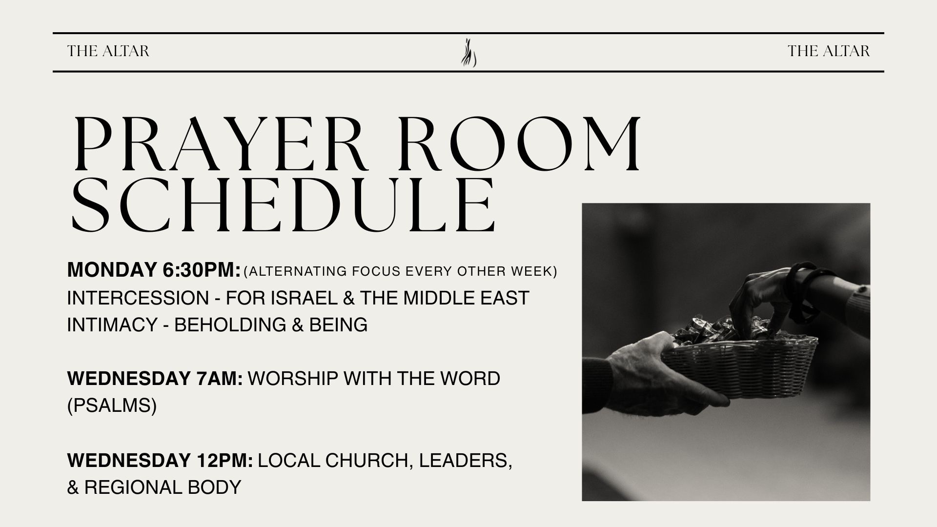 Join us together in prayer each week in the Altar Global Building. We hope to see you there!